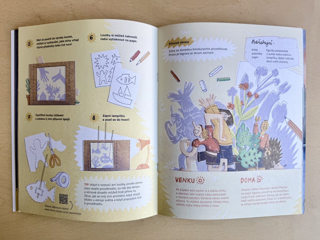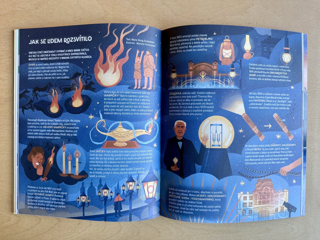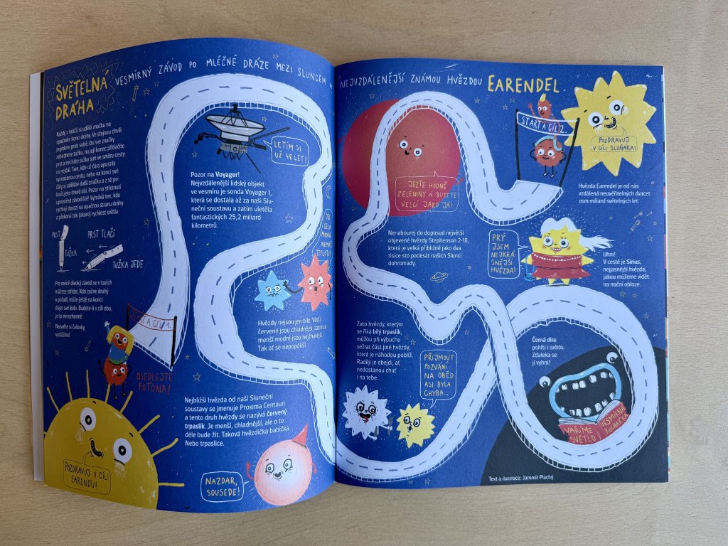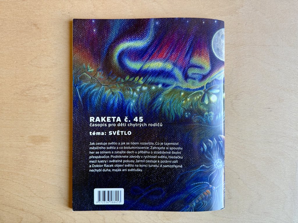 Jak cestuje světlo a jak se lidem rozsvítilo. Co je tajemství měsíčního světla a co bioluminiscence. Zahrajte si spoustu her se stínem a zatajíte dech u příběhu o strašidelné školní přespávačce. Podniknete závody v rychlosti světla, hledačku mezi lustry i světelné pokusy. Jarmil cestuje k polární záři a Doktor Racek objeví světlo na konci tunelu. A samozřejmě nechybí duha, maják ani světlušky.